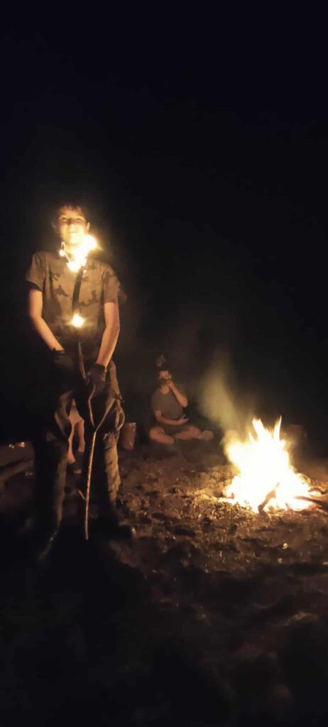 Po intensywnym wysiłku, około 16:00, przenieśliśmy się na przygotowane miejsce piknikowe. Dzięki profesjonalnej infrastrukturze (dostęp do łazienek, przygotowane stoły i drewno), mogliśmy w komfortowych warunkach zintegrować grupę przy wspólnym ognisku [User Notes]. Pieczone kiełbaski, świeże bułki i rozmowy o podziemnych korytarzach były idealnym zwieńczeniem dnia.