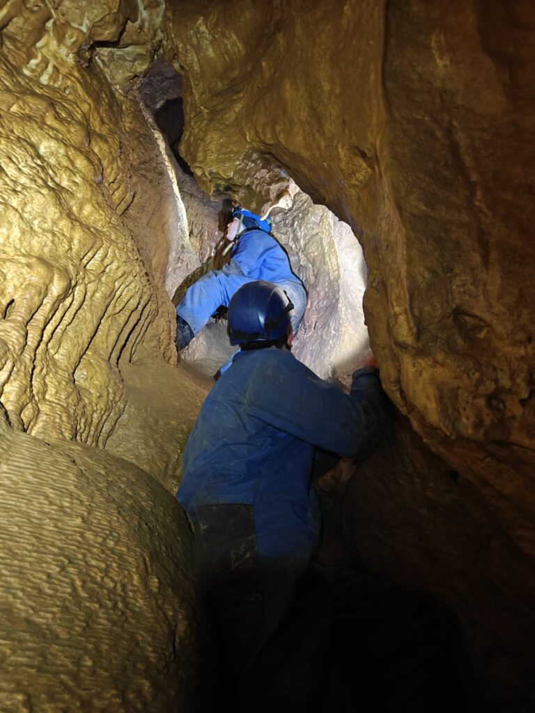 Około godziny 13:00 przyszedł czas na zmianę klimatu – przenieśliśmy się pod Jaskinię Zegarową. To był prawdziwy test charakteru i nowo nabytych umiejętności! W przeciwieństwie do Straszykowej, Zegarowa zaoferowała nam dawkę adrenaliny: w mniejszych grupach eksplorowaliśmy wąskie odnogi, gdzie konieczne było czołganie się i przeciskanie przez ciasne korytarze. Dla wielu młodych odkrywców była to pierwsza w życiu okazja do przełamania własnych barier w tak ekstremalnych, choć w pełni kontrolowanych warunkach.